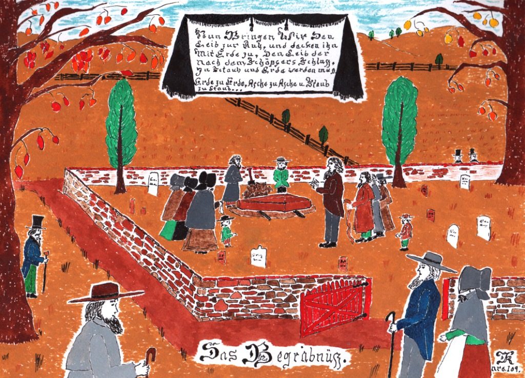 Young Abraham Gehman died of some attack to his nervous system, or mental state, which manifested for nine days. Someone knowledgeable about 19th century medicine will have a better guess than I at the meaning of Nervenschlag. In any case, it was a tragedy for his parents, David and Susanna, who had already seen seven of their children die at various ages, and Abraham was the only son who made it close to adulthood. Two of their daughters lived to marry and have children.